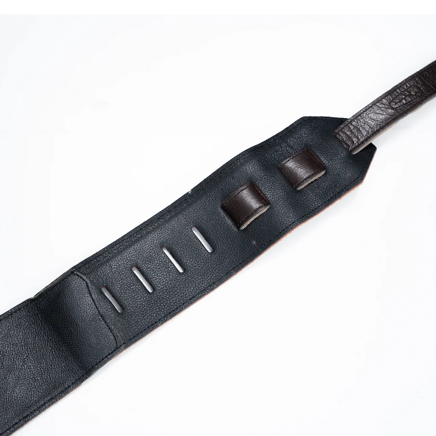 Danny Shniederman’s LK Artist bass strap is 100% handmade from repurposed leather, with perfect combination of strong top leather and soft suede backing gives Nicole the “broken in” feeling she needs from the first moment wearing the strap live and in the studio.