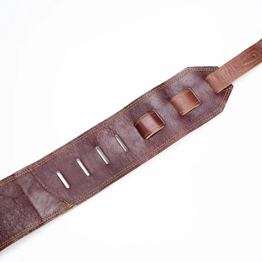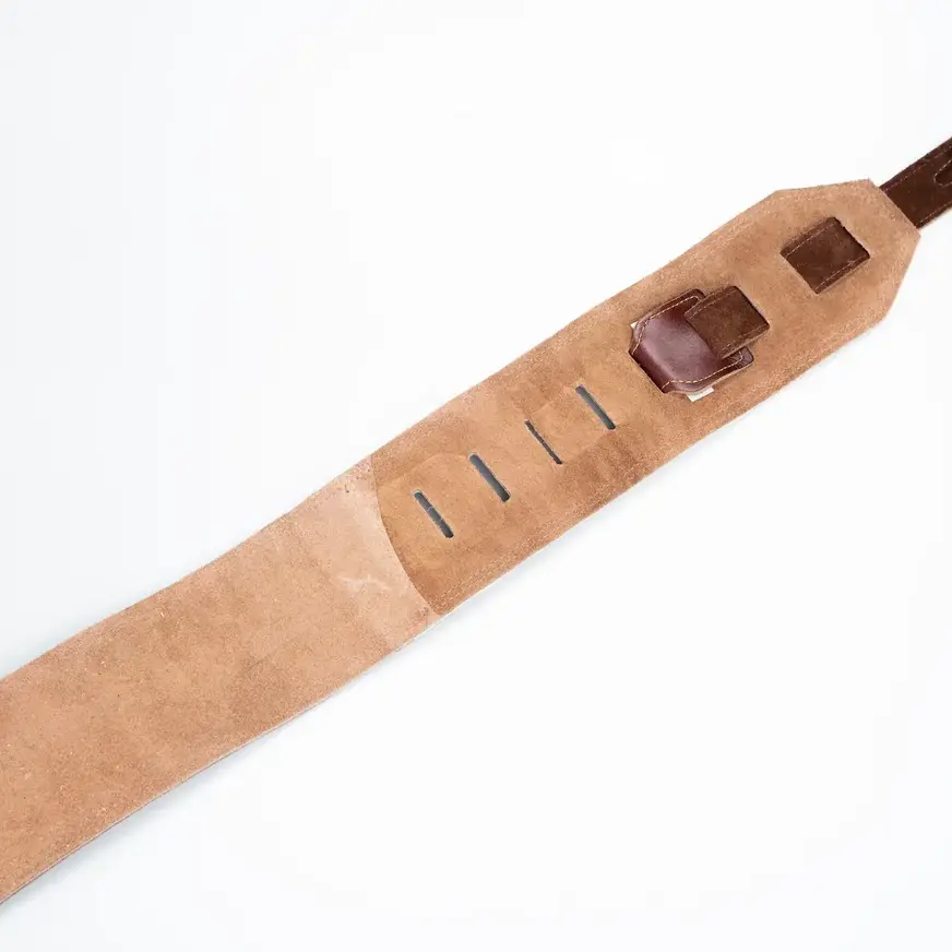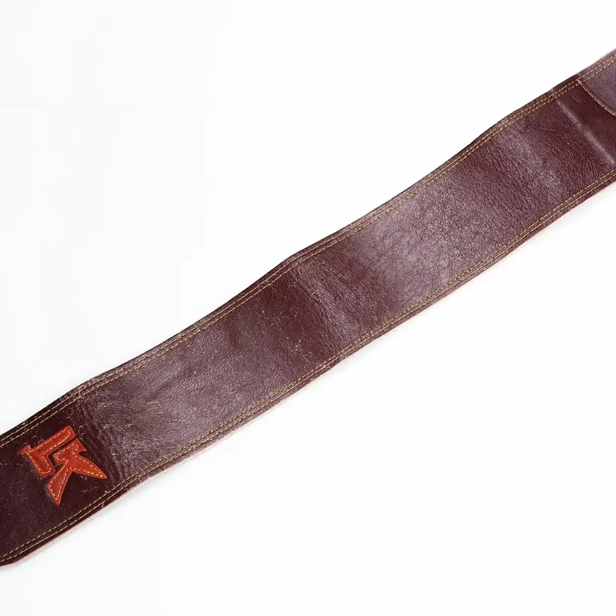 Eric Fortaleza’s LK Artist bass strap is 100% handmade from repurposed leather with soft suede backing giving her the “broken in” feeling from the first moment wearing it live and in the studio. Eric’s strap model features distressed look, with double stitching and a popping LK logo color to really stand out!